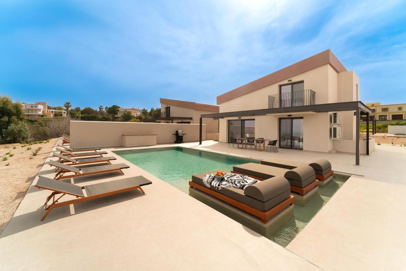 Elysia Villa (Sea View). This villa features a pool with a view. Boasting a private entrance, this air-conditioned villa features 1 living room, 4 separate bedrooms and 3 bathrooms with a shower and a hairdryer. Guests will find a stovetop, a refrigerator, a dishwasher and kitchenware in the kitchen. The villa also comes with a barbecue. The spacious villa features a washing machine, soundproof walls, a coffee machine as well as a terrace with sea views. The unit has 4 beds. ;
